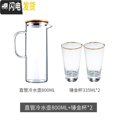 三维工匠冷水壶凉水壶大容量透明玻璃水壶可高温防爆家用凉水杯冷水杯套装 直管冷水壶800+2个垂金杯