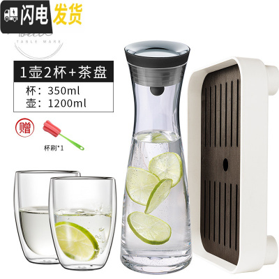 三维工匠Grand Cru欧式凉水壶玻璃可高温家用防爆冷水壶套装大容量凉水杯 大号水壶+2只水杯350+茶盘