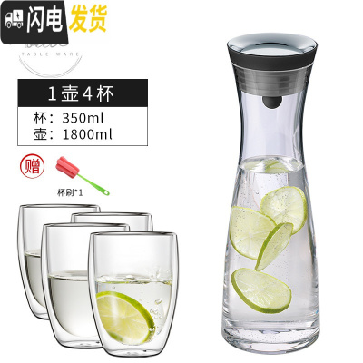 三维工匠Grand Cru欧式凉水壶玻璃可高温家用防爆冷水壶套装大容量凉水杯 大号水壶+4只水杯350+茶盘