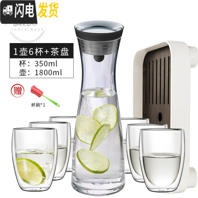 三维工匠Grand Cru欧式凉水壶玻璃可高温家用防爆冷水壶套装大容量凉水杯 大号水壶+6只水杯350+茶盘