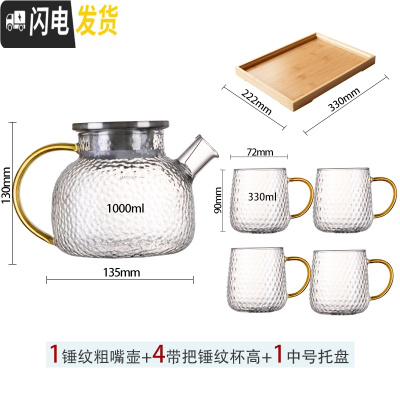 三维工匠冷水壶加厚玻璃泡茶壶可高温凉白开水杯子防爆大容量水壶家用套装 粗嘴壶+4高把杯+托盘3322凉水壶