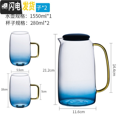 三维工匠北欧玻璃冷水壶防爆家用凉水壶大容量可高温凉白开水杯茶扎壶套装 冷水壶+两只玻璃杯(组合套装)