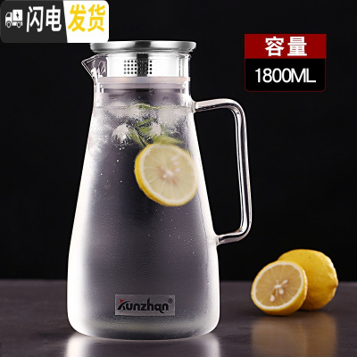 三维工匠冷水壶家用玻璃凉白开水杯子套装耐热高温大容量防爆扎装冰茶果汁 大号1800凉水壶