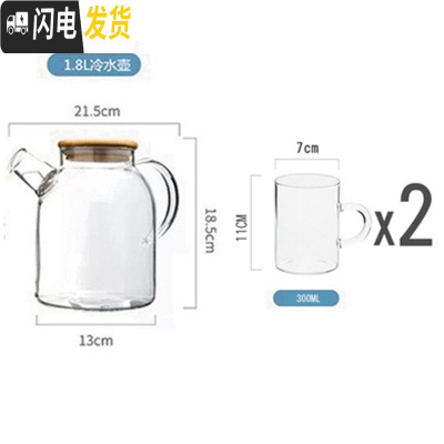 三维工匠可高温玻璃冷水壶防爆大容量凉水壶家用超大茶壶凉开水杯扎壶套装 1.8玻璃盖款