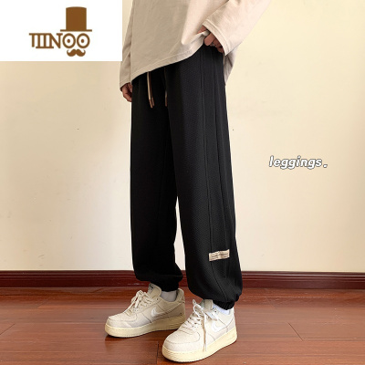 YANXUoversize裤子男美式华夫格卫裤宽松大码休闲薄款束脚运动裤男