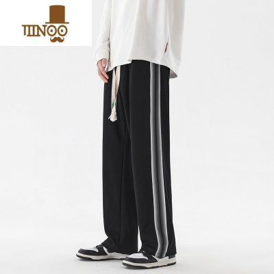 YANXU侧边条纹休闲裤男夏季潮牌高街垂感直筒运动卫裤男生宽松阔腿裤子
