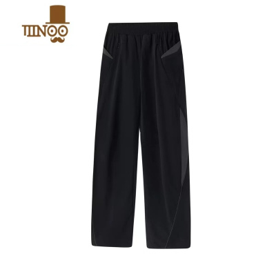 YANXU黑沼泽 美式感小众男生ins潮牌高街黑白拼接设计休闲宽松长裤