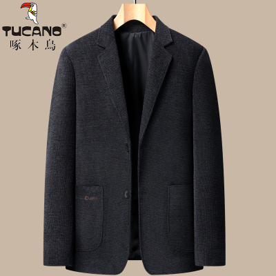 啄木鸟毛呢西装男士爸爸秋装呢子外套秋冬季中老年西服上衣50岁60