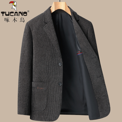 啄木鸟毛呢小西装男士爸爸秋装呢子外套秋冬季中老年人西服男上衣