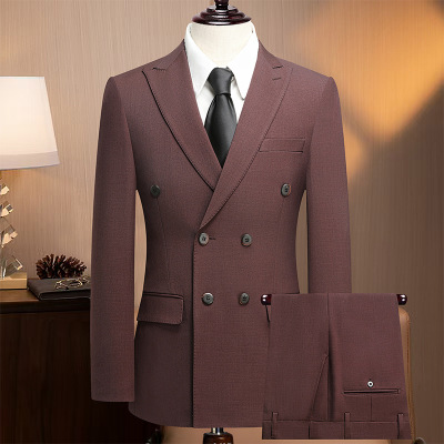 轻奢戗驳领双排扣套装西服男士商务西装韩版修身正装婚礼结婚西服