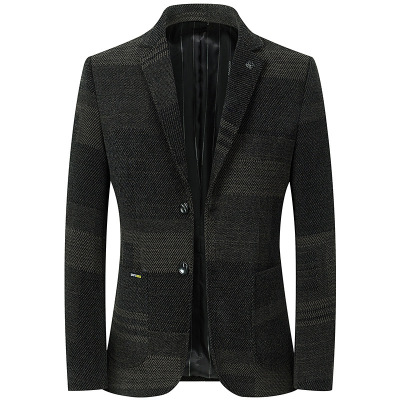 千鸟格毛料西装男秋冬新款韩版男式休闲西装男士修身西服