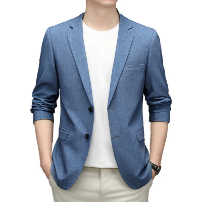 蓝格男士西装春秋薄款休闲西服免烫修身小西装男单西外套