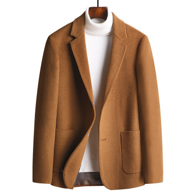 恒源祥高端羊毛双面呢西服男士中年爸爸冬装西装大衣短款呢子外套