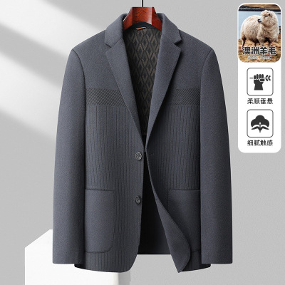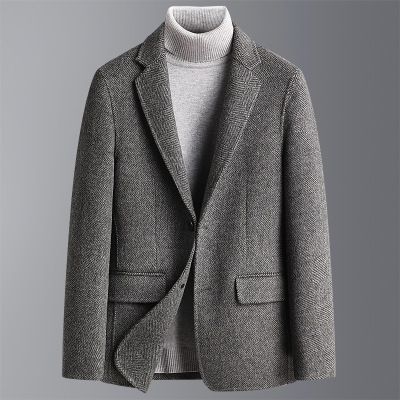 双面呢羊毛西服秋冬新款男士韩版修身百搭西装休闲羊毛潮流外套男