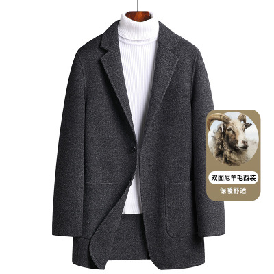 双面呢羊毛西服秋冬新款男士韩版修身百搭西装休闲羊毛潮流外套男