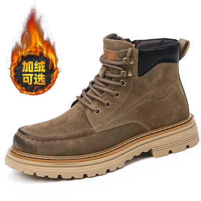 马丁靴男士潮款冬季加绒英伦风工装靴男士真皮保暖户外登山靴子男