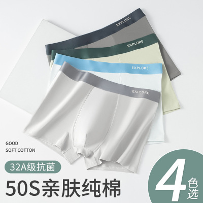 4条装棉男士内裤石墨烯档男生四角短裤衩透气平角男士裤头