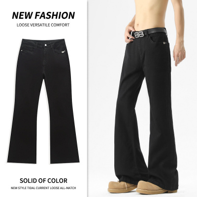 小黑色牛仔裤子男具显高显腿长男女款设计感喇叭牛仔裤男装潮