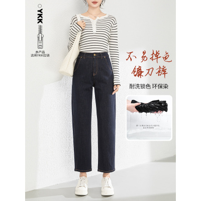 秋款不易色宽松弯刀裤牛仔裤女高腰通勤九分镰刀裤