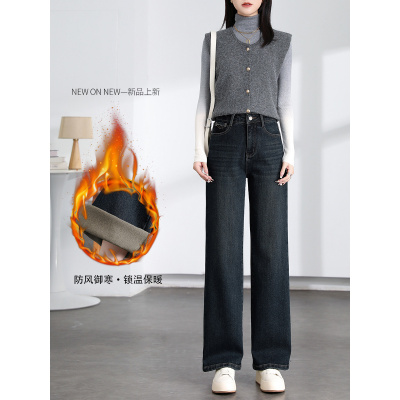 复古高腰显瘦直筒牛仔裤女工厂直销加绒新款拖地裤