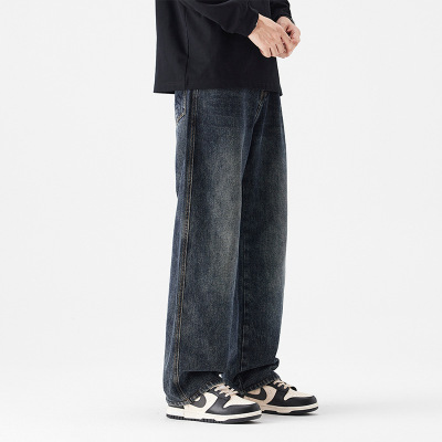 YANXUsuecx新款美式复古宽松休闲直筒牛仔裤子男垂感高街潮流长裤