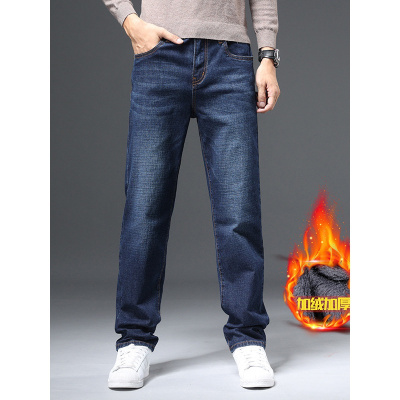 加绒加厚牛仔裤男士冬季修身小直筒修身弹力新款秋冬休闲保暖裤子