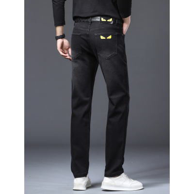 高端印花牛仔裤男秋冬季新款欧版潮流直筒修身小脚休闲长裤子