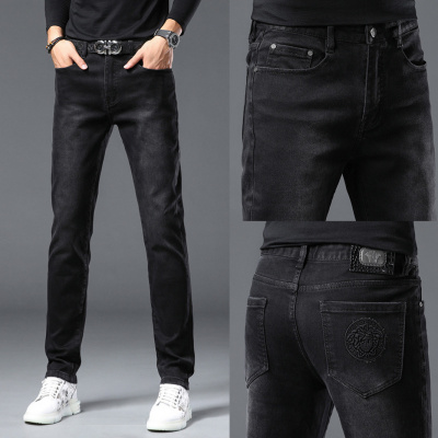 秋冬新款高端牛仔裤男潮牌黑色弹力修身轻奢欧货时尚男装裤子