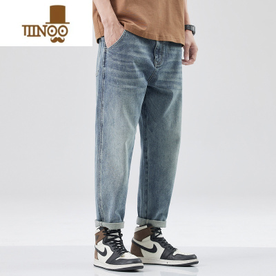 YANXU美式水洗复古做旧牛仔裤男士夏季新款宽松直筒男生休闲长裤子