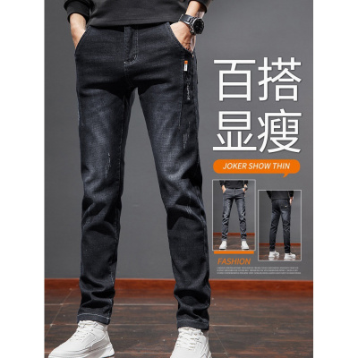 秋冬新款黑色牛仔裤男直筒潮牌弹力修身小脚秋季休闲男裤长裤