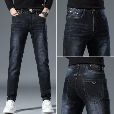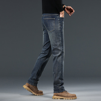 Pants男士牛仔裤加绒品质舒适裤子男 冬季潮流弹力修身直筒裤男生