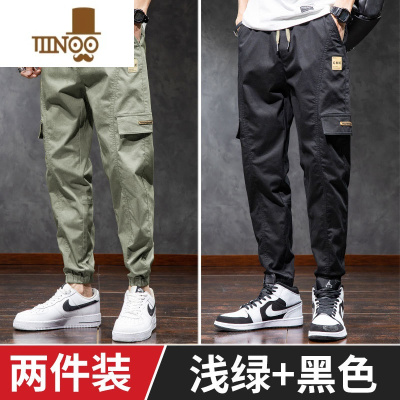 YANXU裤子男夏季薄款潮牌工装裤青少年男裤2023新款九分男士休闲裤