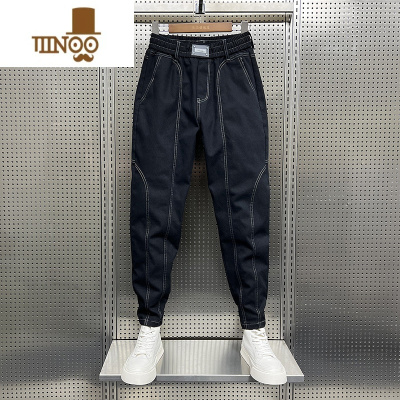 YANXU男士韩版潮流宽松哈伦束脚裤青年百搭小脚明线长裤网红束脚休闲裤