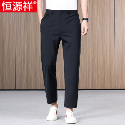 恒源祥冰丝休闲裤男士西裤夏季薄款四面高弹力直筒高端丝滑长裤子