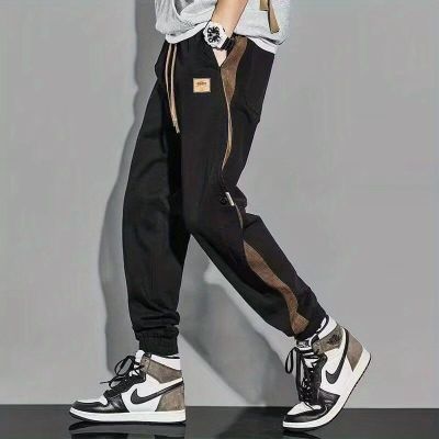 春夏新款男士休闲裤薄款哈伦拼接修身运动工装束脚裤