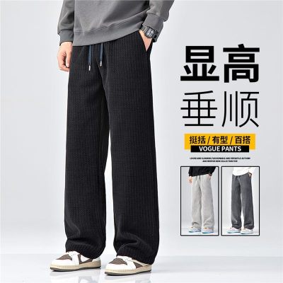 新款针织条纹休闲裤男士秋季新款松紧腰宽松直筒垂感长裤男裤