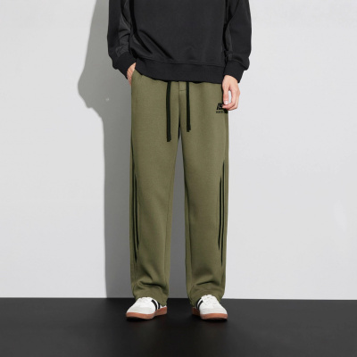 春秋新款针织休闲裤 男刺绣微弹宽松直筒裤男士 垂感立体顺滑长裤