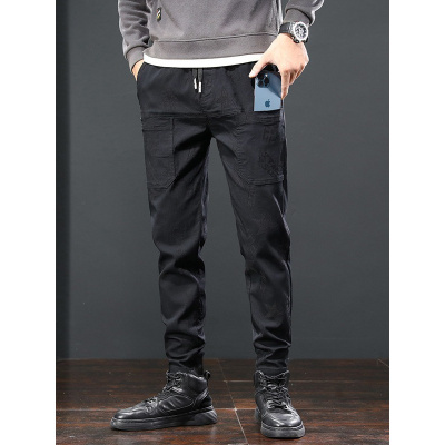 秋冬软牛仔裤男士新款斜插口袋中高腰修身弹力小直筒休闲裤子长裤