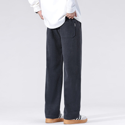 新款男士休闲裤针织垂感直筒宽松百搭阔腿运动裤男秋冬加绒裤