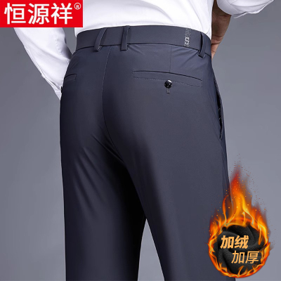 恒源祥高端西裤男士秋冬款休闲裤加绒中年直筒裤弹力西装裤长裤子