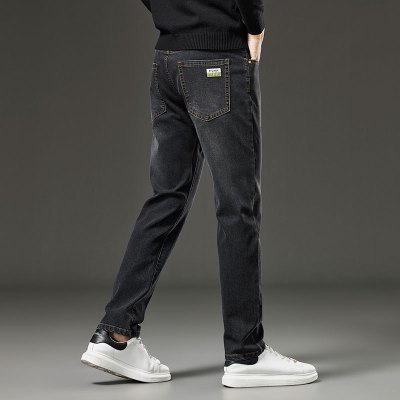 秋冬软牛仔裤男士新款斜插口袋中高腰修身弹力小直筒休闲裤子长裤
