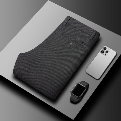羊毛混纺秋冬新款抗皱弹力休闲裤男士修身直筒中腰长裤子潮流男裤