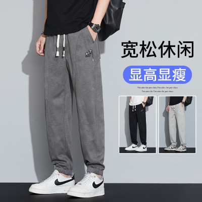 冰丝弹力男士休闲裤宽松裤子男加大加肥裤直筒长裤薄款卫裤男