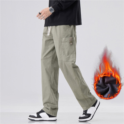加绒加厚长裤子男保暖宽松直筒耐磨春秋款轻商务休闲裤男士秋冬季