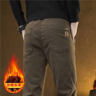 秋冬款加绒男士休闲裤宽松直筒修身弹力轻商务松紧腰韩版百搭长裤