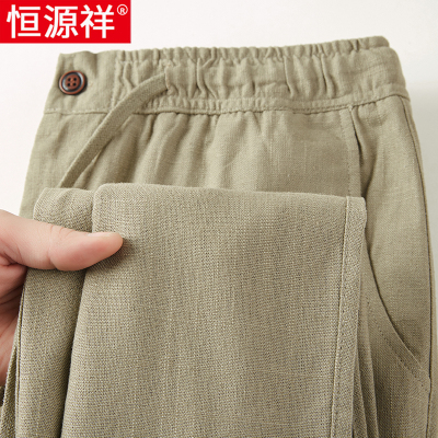 恒源祥亚麻裤男士春秋薄款男裤休闲裤宽松直筒裤透气棉麻料长裤子