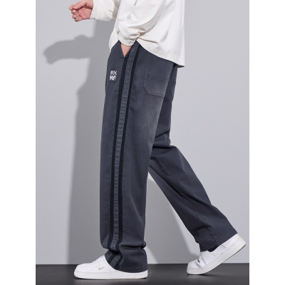 YANXU条纹裤子男士潮牌ins高街宽松百搭加绒束脚卫裤运动休闲裤