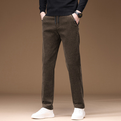 高端秋冬新款休闲裤男士直筒商务西裤厚款男裤显高松紧腰百搭裤子