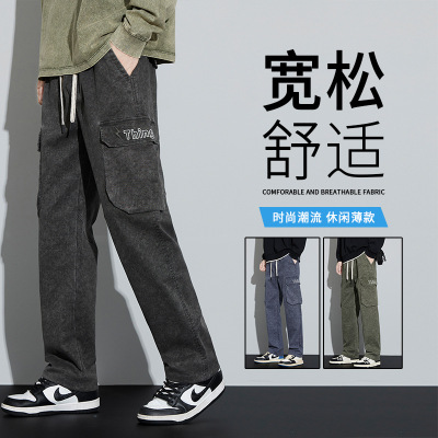 休闲裤男士新款百搭美式阔腿工装裤春秋季潮牌宽松直筒长裤子