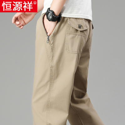 恒源祥多口袋工装裤男士纯棉休闲裤夏季薄款中年大码宽松直筒裤子